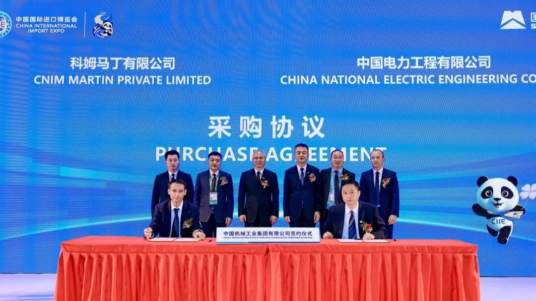 11月6日,国机集团在第八届中国国际进口博览会上举办集中签约仪式,与来自德国、日本、英国、巴基斯坦等国际伙伴签署合作协议。国机集团党委常委、副总经理黎晓煜出席集中签约仪式并致辞。